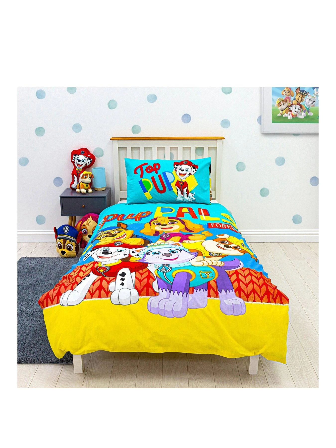 Roll into bedtime with this bright and colourful single Paw Patrol duvet! The colourful design showcasing furry favourites Marshall, Chase, and Rubble along with Skye and Everest. With a repeating pattern on the reverse this cosy duvet set is the perfect addition to your little pup’s bedtime routine!