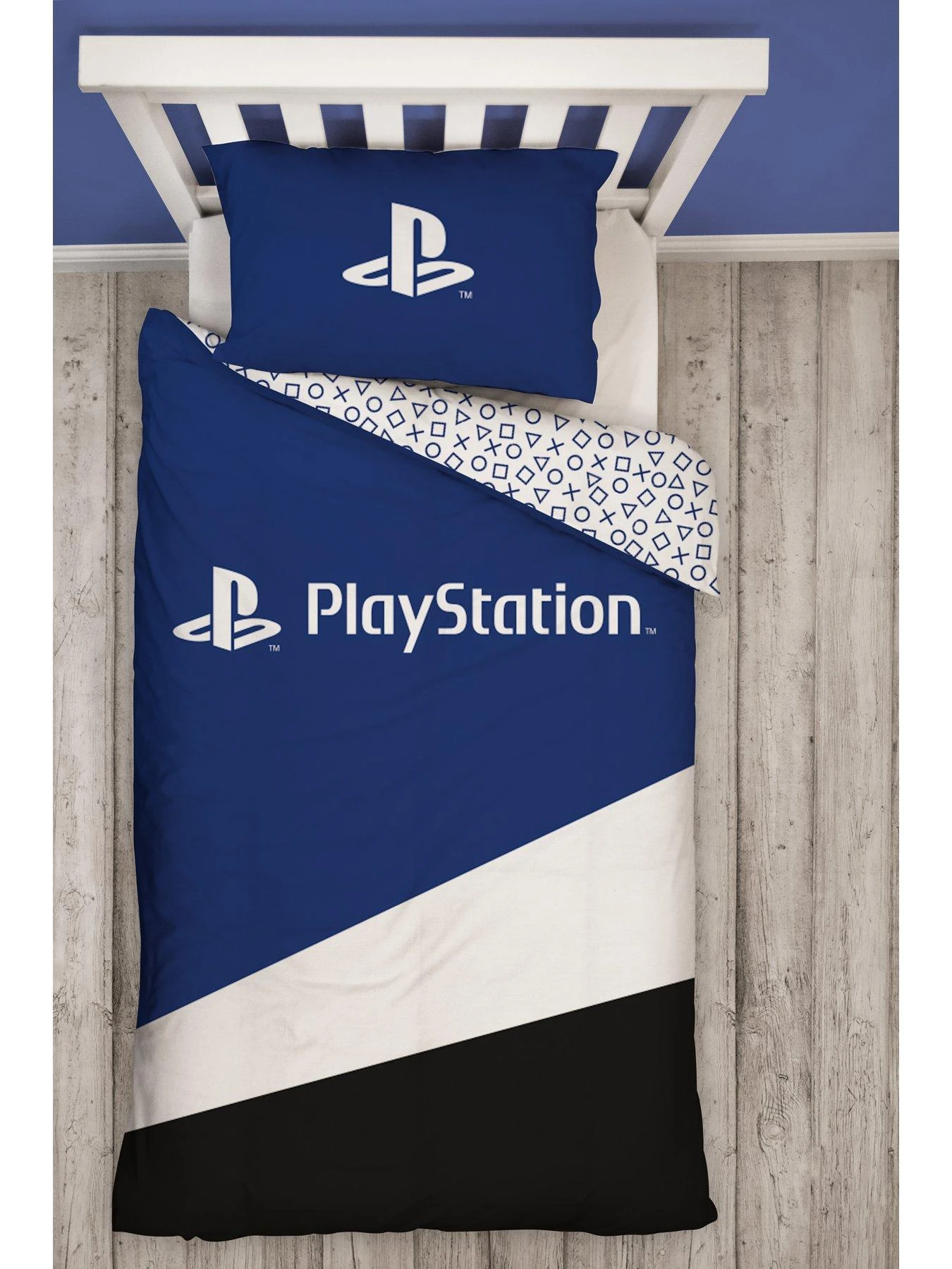 Transform your resident gamerās bedroom into a sleep space fit for the top streamers and E-Sports athletes with the PlayStation Banner duvet cover and pillowcase set.