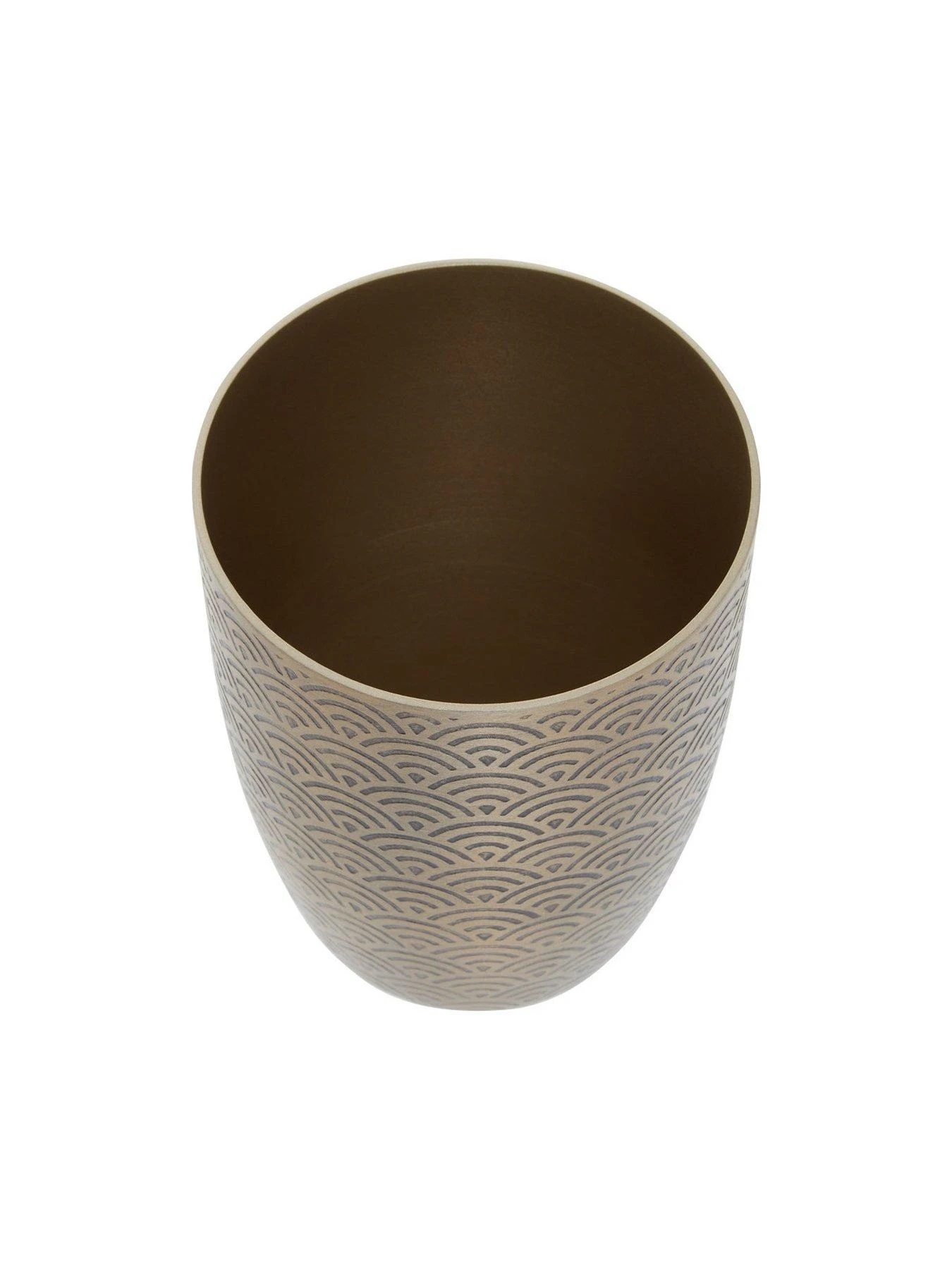Featuring a simple and curved design with etched detail, this bathroom tumbler will add practicality to the basin or sink. Made from durable aluminium in the gold finish, this tumbler will be a timeless addition to the bathroom accessories.