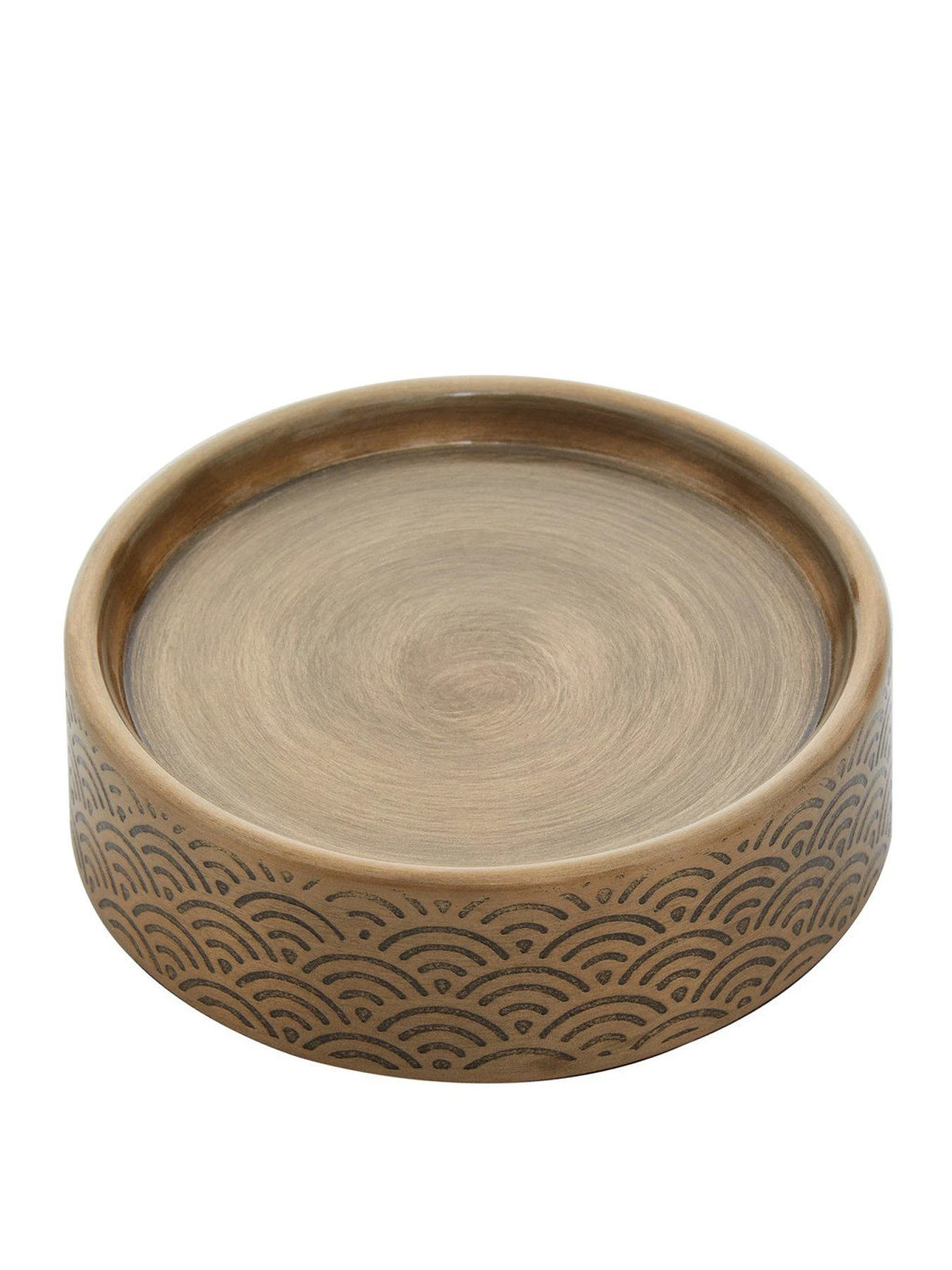 Featuring a simple and curved design with etched detail, this soap dish will add practicality to the basin or sink. Made from durable aluminium in a gold finish.