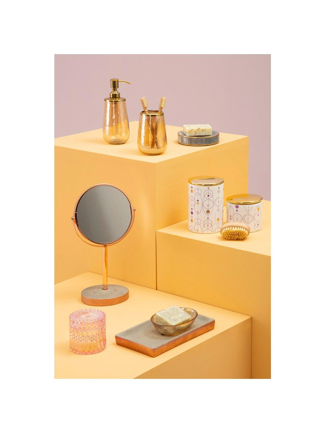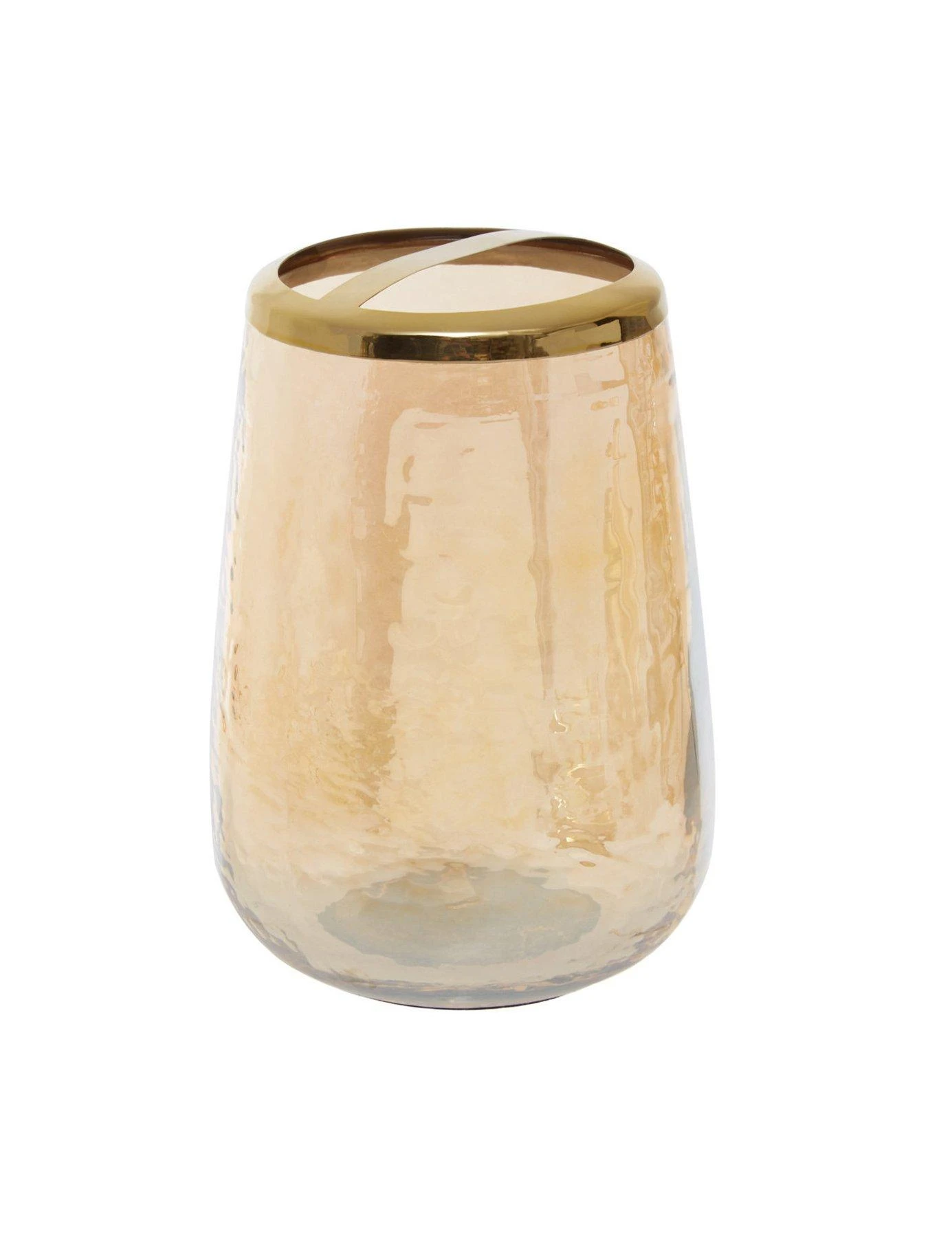 Boasting a chic accent to the interior with its textured base and a gold finish metal rim with a divider, this toothbrush holder will add practicality to your bathroom. Made from robust glass, this holder is ideal for keeping toothpaste and brushes organised.