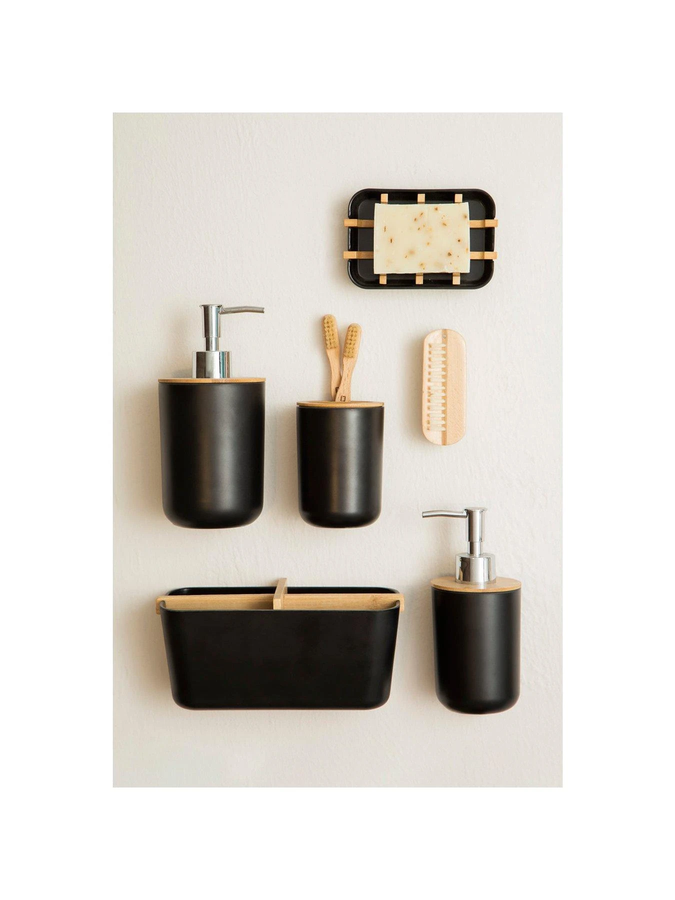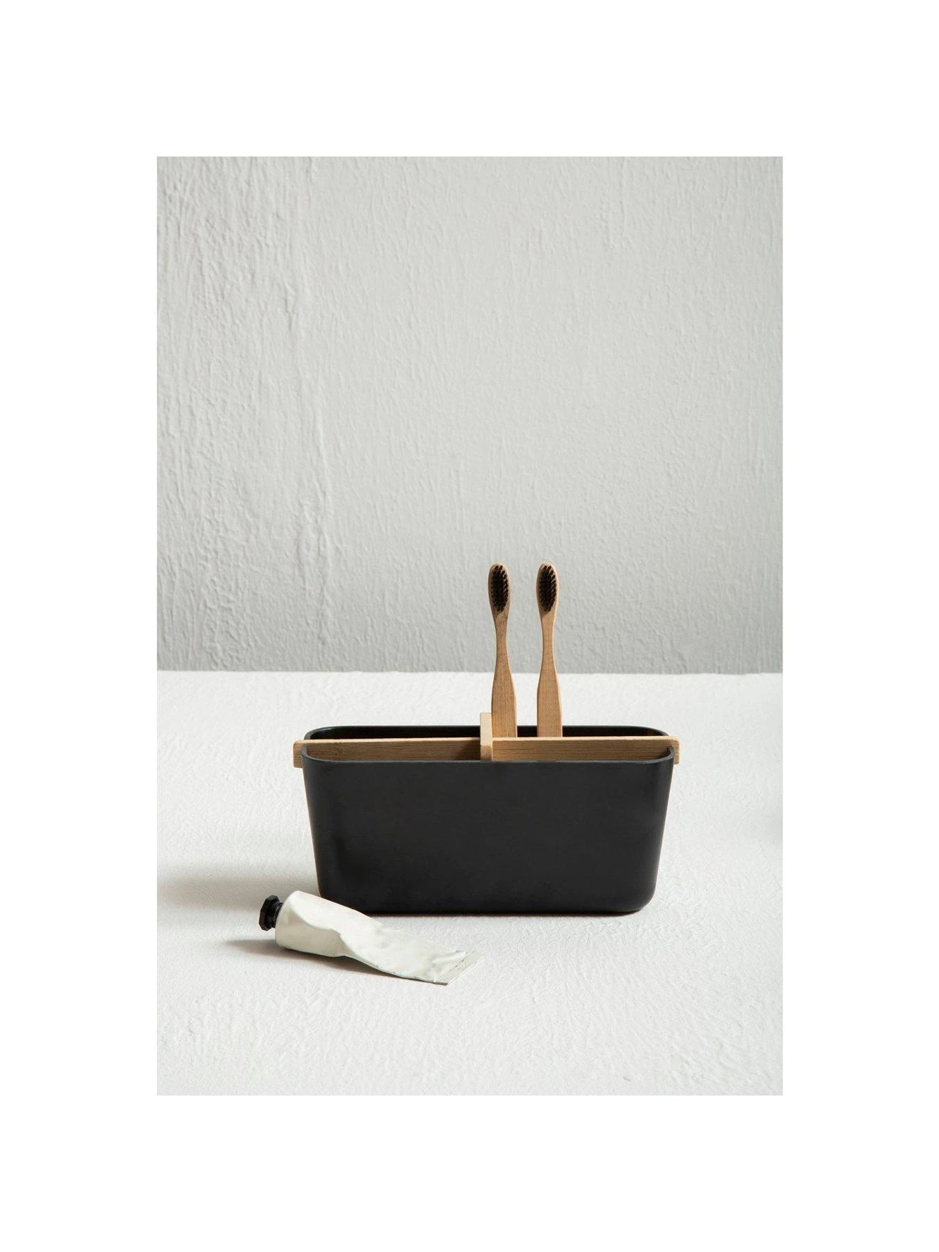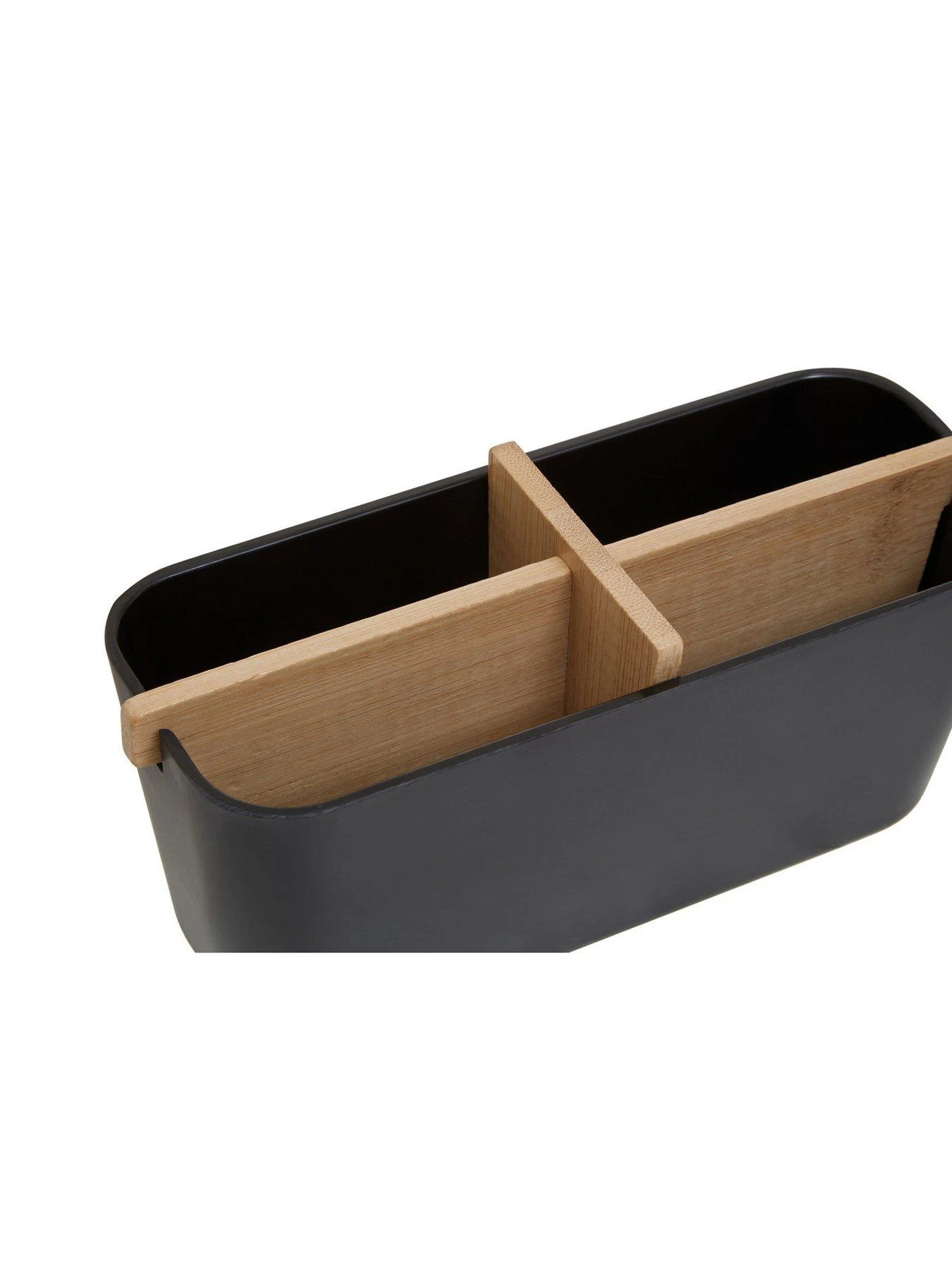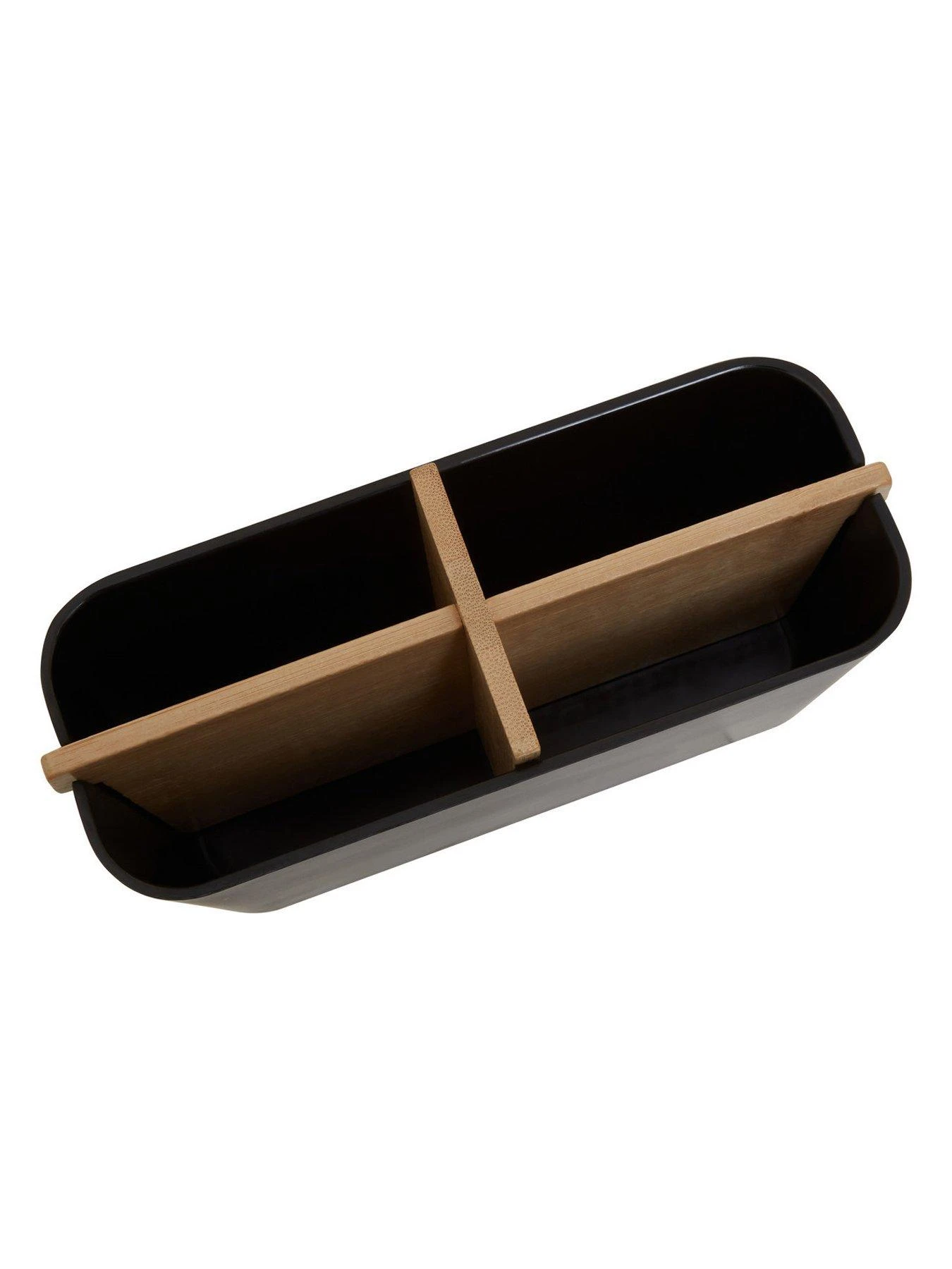 This detachable organiser offers four storage compartments to showcase and store multiple items with style. Made from eco-friendly bamboo fibre, this organiser has a black finish case that blends easily to a variety of decors.