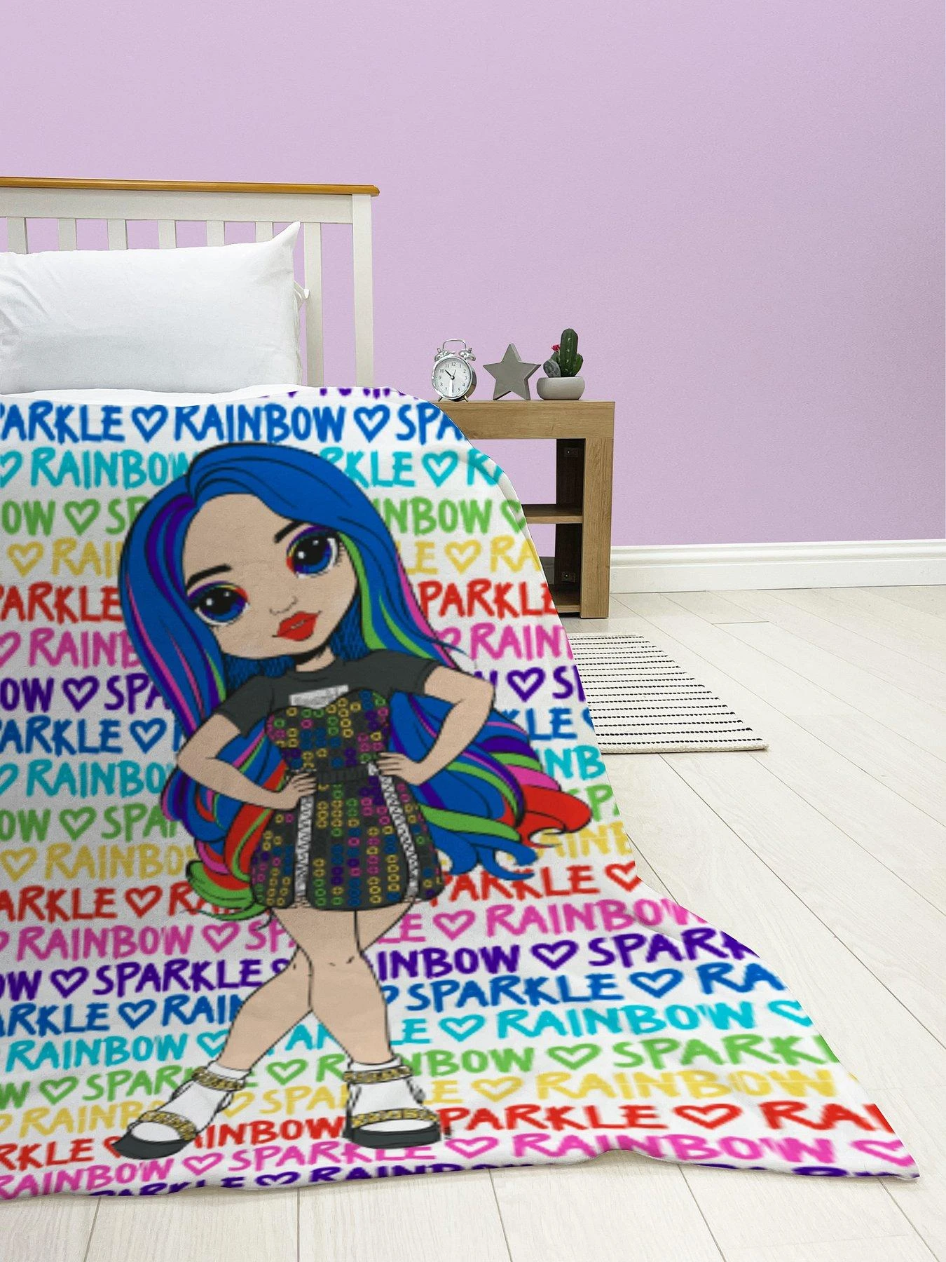 Let your colours shine with this Rainbow High fleece. It will be time to sparkle and shine whilst being snuggled up in this Rainbow High fleece. With a rainbow print as the background this is the perfect addition to any home.