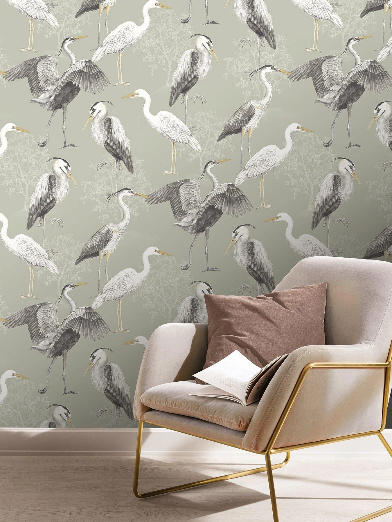 Bold, beautiful and full of charm, it sees a series of graceful hand-drawn herons set against a sage green canvas. The unique combination of a classy palette and large-scale artwork makes it a fantastic way to breathe life into a feature wall.