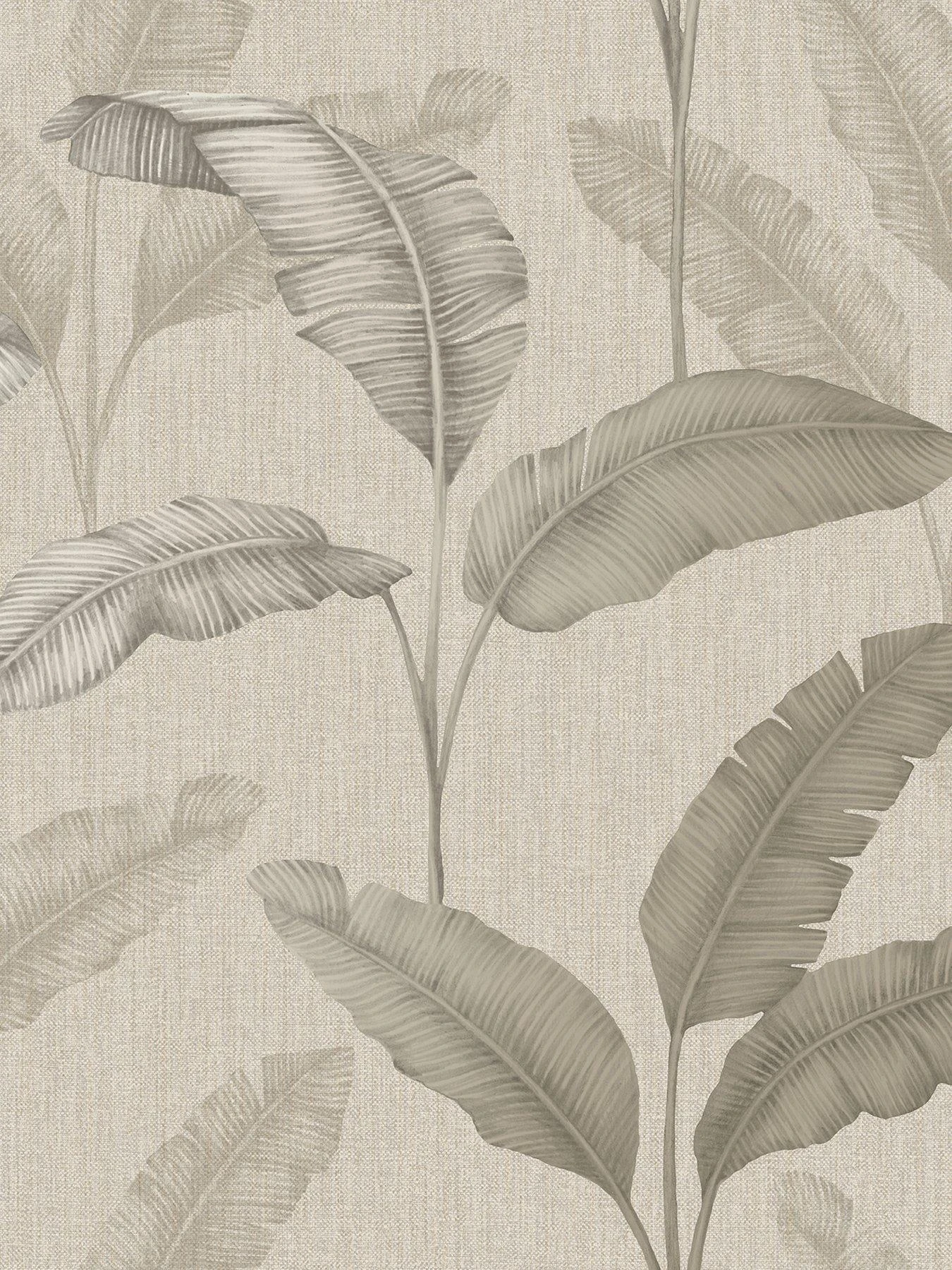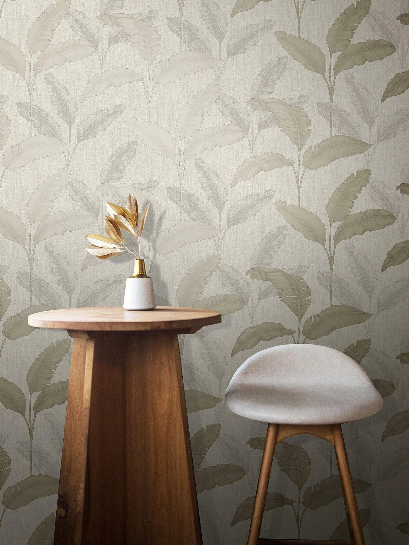 Against a classic beige backdrop, the dramatic motif captures the attention with palm leaves all over in a gorgeous golden tone. Detail within the foliage, as well as silhouetted leaves in the backdrop, provide plenty of depth, making smaller spaces feel larger in an instant.