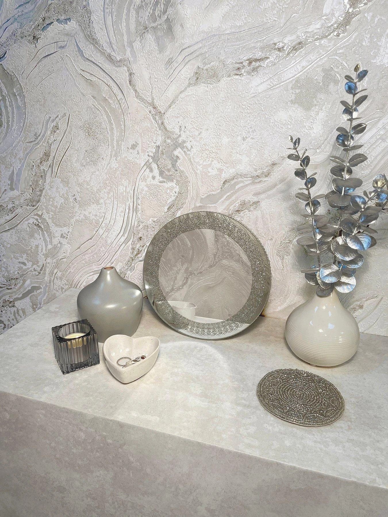 - Featuring the look of natural stone with subtle metallic tones, this dramatic design is perfect for giving your décor a stunning, contemporary style.