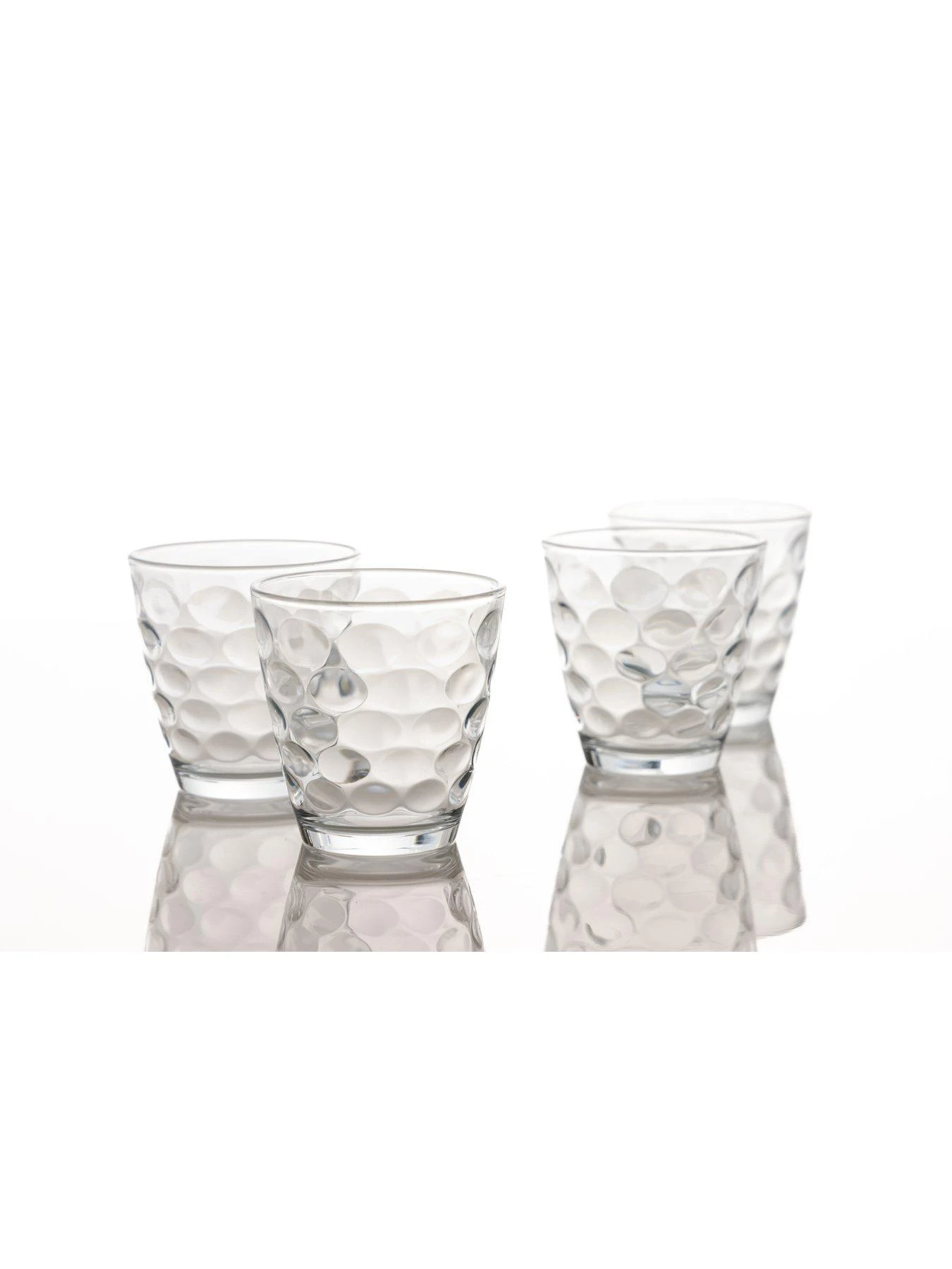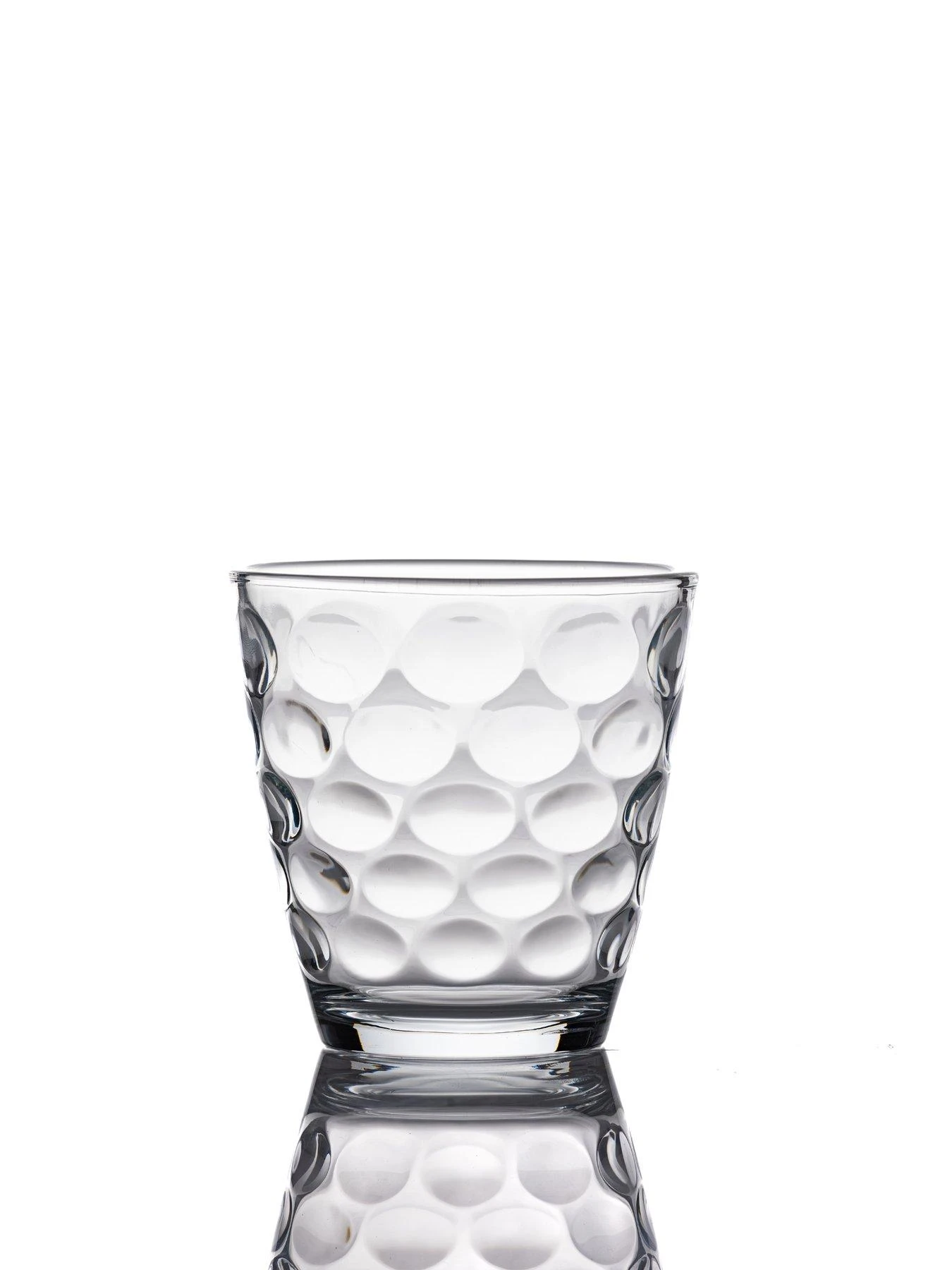 Whether you’re enjoying fresh-squeezed juice first thing in the morning, an ice-cold drink at dinner time, or your favourite spirit on the rocks, their oversized silhouette and fantastic level of clarity is enhanced by the textured circles all around their interiors. For added convenience, the whole set is dishwasher safe, so the washing up is nice and easy.