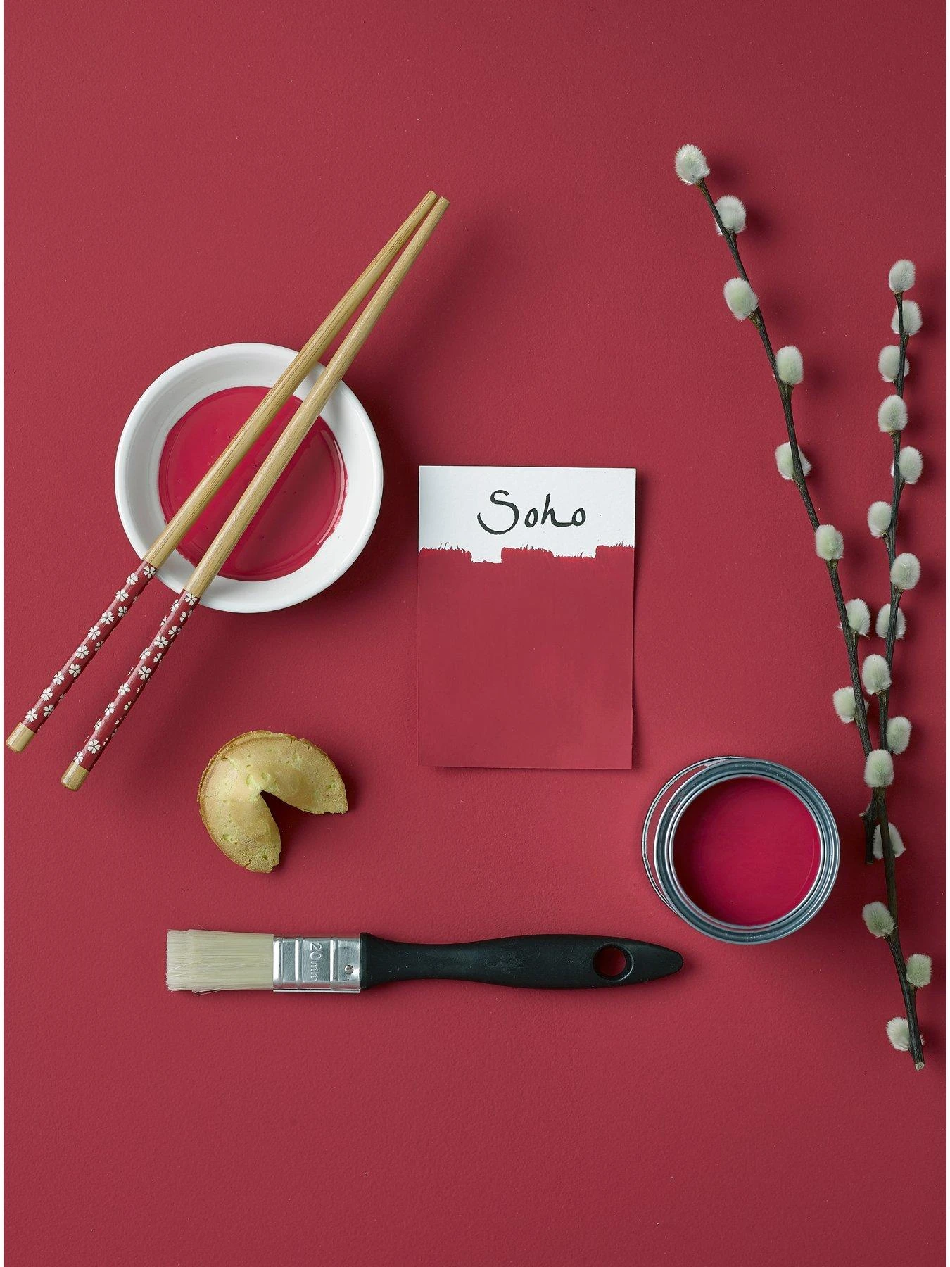 Soho is a deep red hue that brings inviting warmth and a touch of drama into your home. Neutral colours offer the perfect backdrop to really make it pop, while similar earthy tones help to create a wonderfully cosy look.