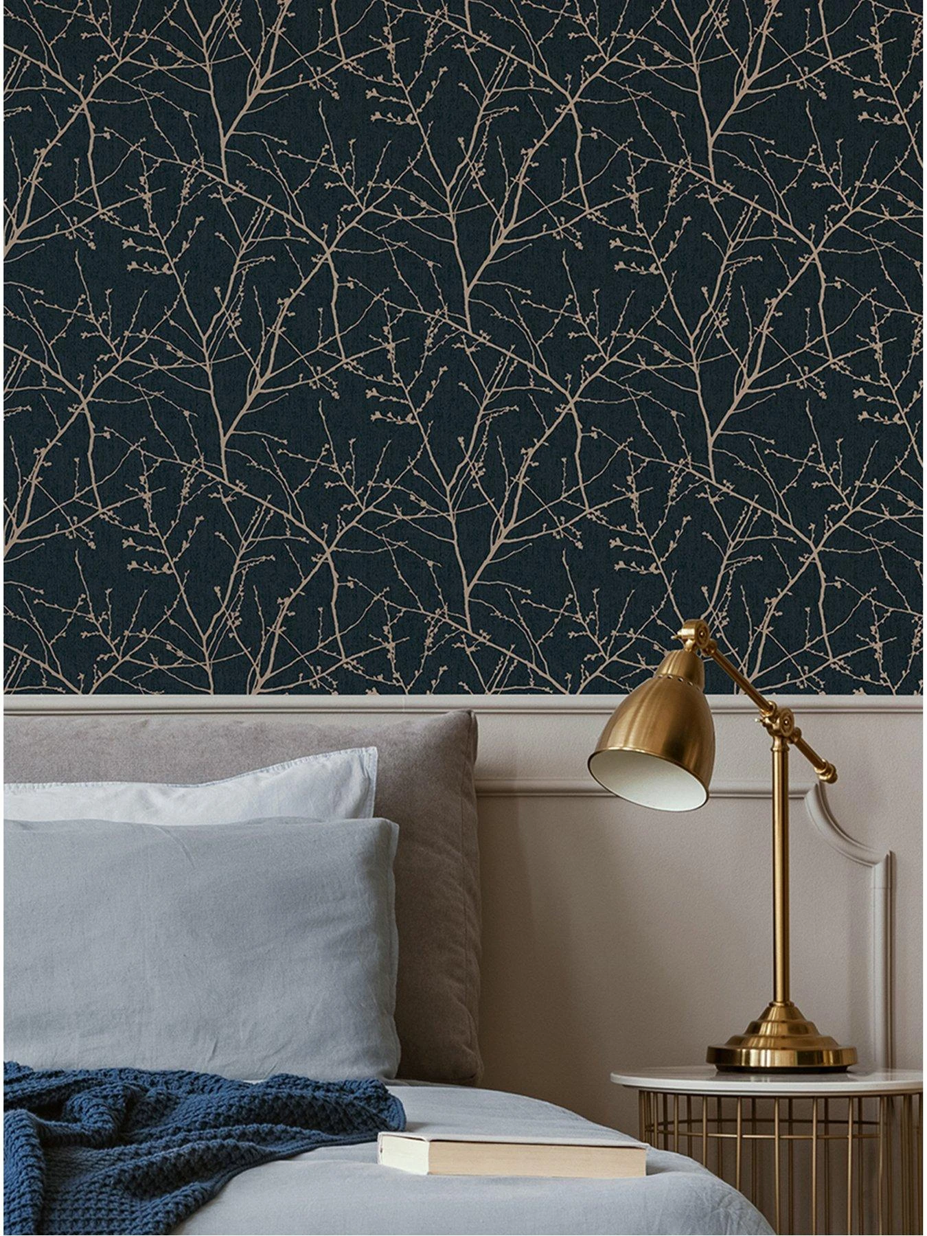 A beautiful ombre mica sweeps through this tranquil layered sprig design, underpinned by a delicate fabric effect.