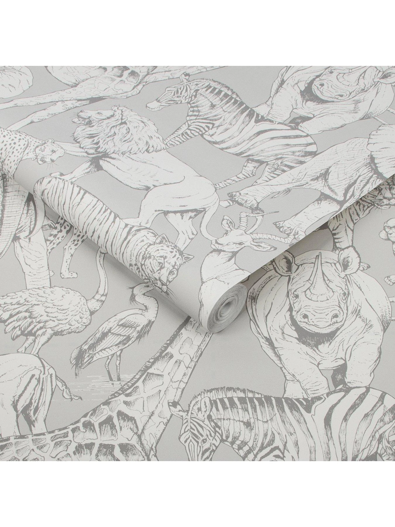 Superfresco Easy Jungle Animals Grey Wallpaper