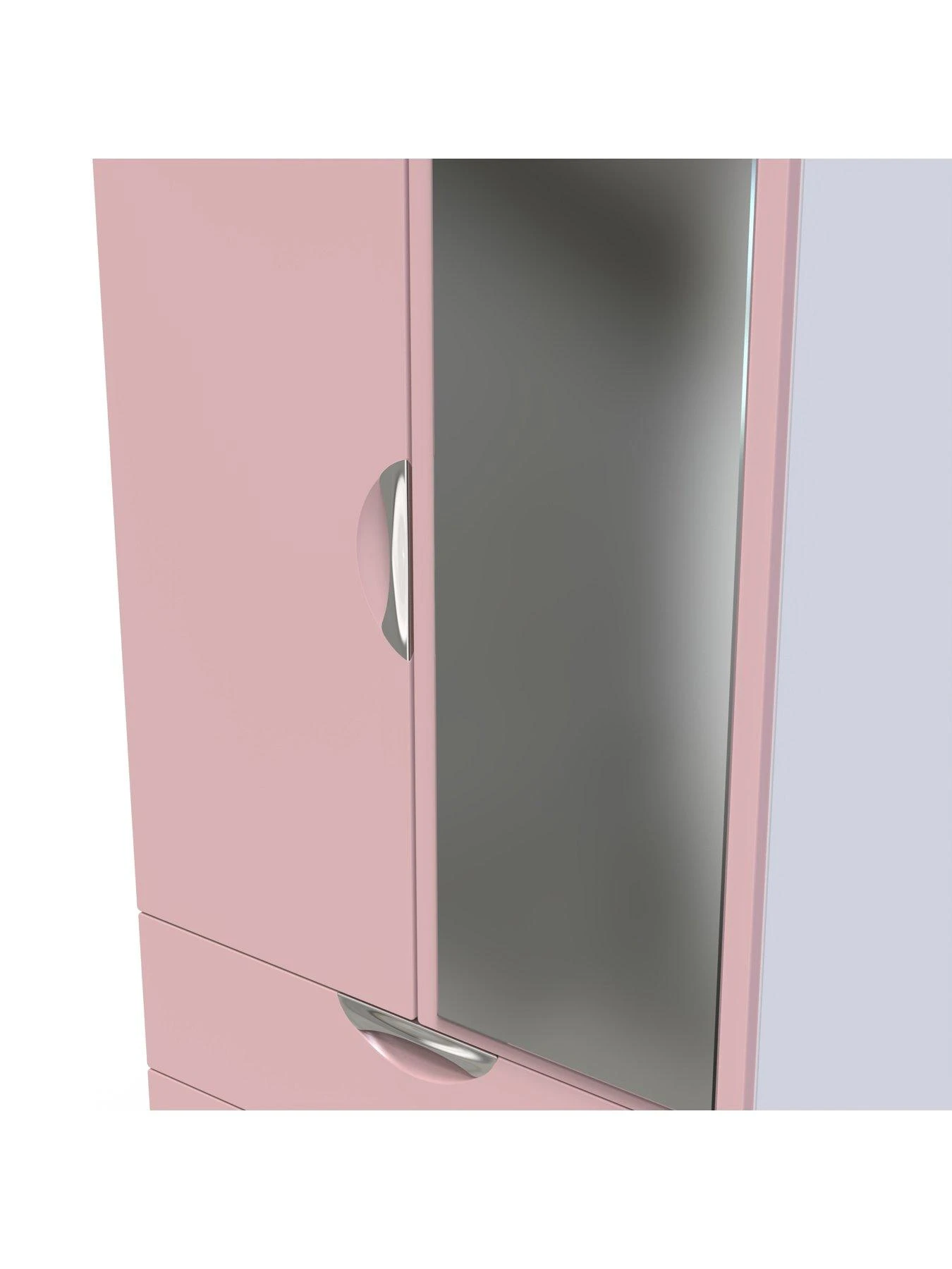 The scratch-resistant finish keeps it looking great over time, while the pink gloss that covers the doors and drawer fronts is smooth and shiny. This is complemented by the full-length mirror to one of the doors, which adds extra light and depth to your bedroom, as well as providing the perfect place to check your outfit before heading out the door!