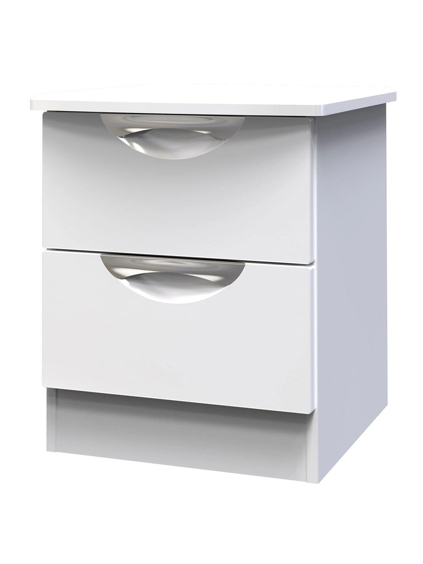 SWIFT Alva Ready Assembled 2 Drawer Bedside in White Gloss with Integrated Wireless Charging – Made in the UK