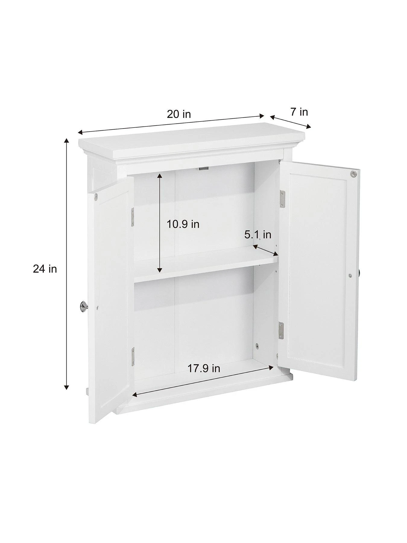 - This bathroom wall cabinet with perfect proportion has a crown molding top and a simple finish in white that give you a visual treat.