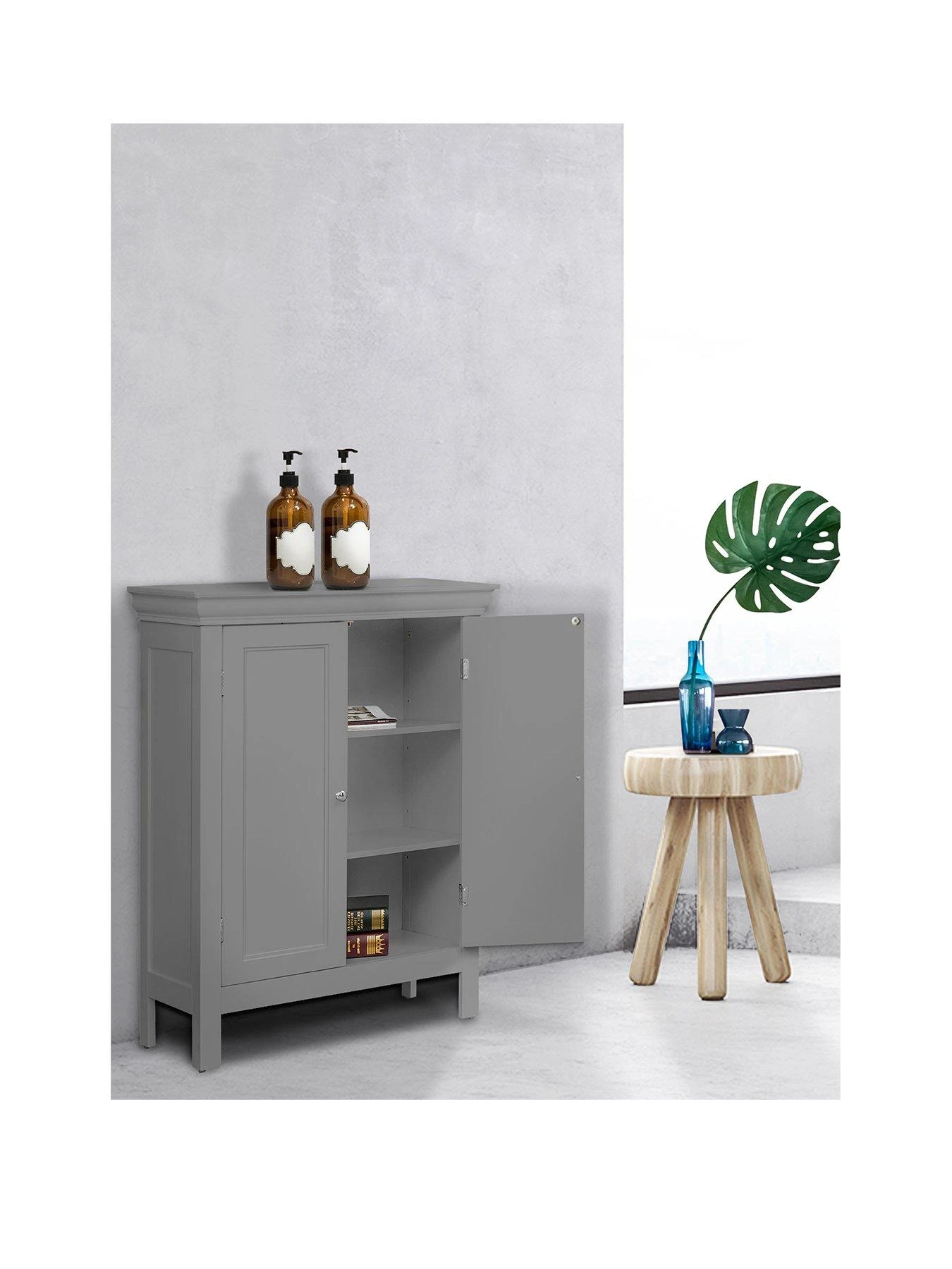 Teamson Home Stratford 2 Door Bathroom Floor Cabinet in Grey
