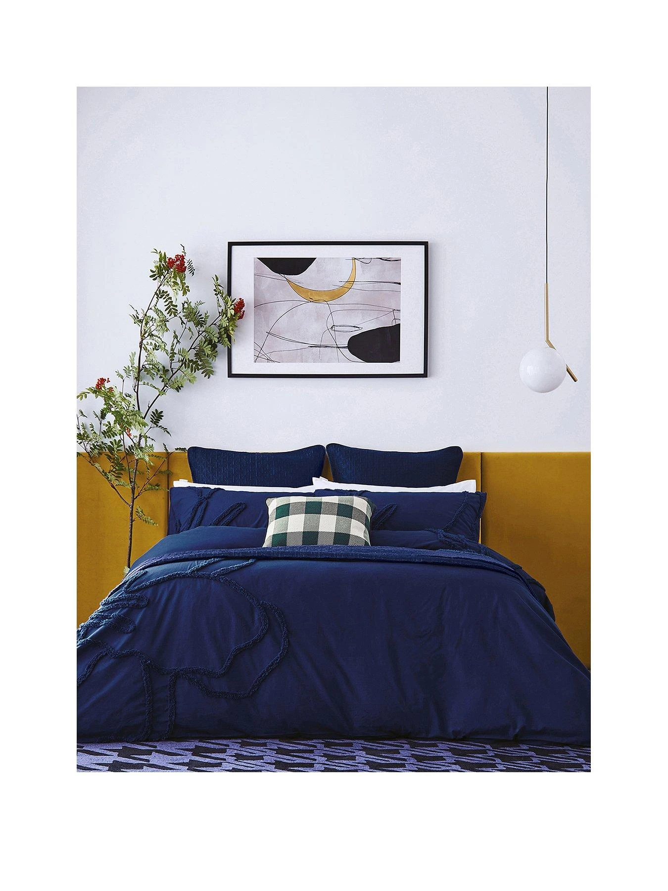Ted Baker Magnolia Tufted 100% Cotton Percale 180 Thread Count Pillowcase – Navy