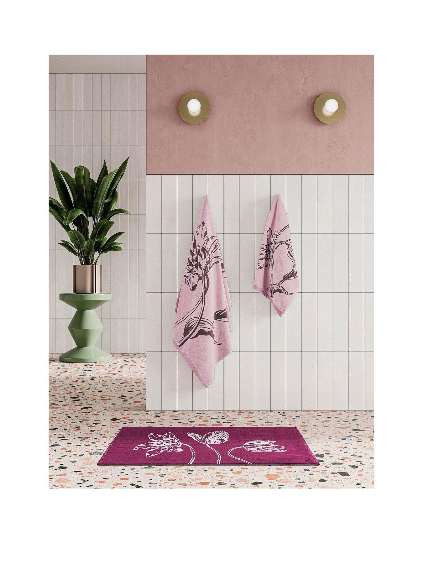 Add statement luxury to your bathroom scheme with the Ted Baker ??????Tulip’ collection. Terry bath mat features large graphic tulips all over in a choice of dusky pink or gold. Made in 100% BCI cotton. Also available in a hand, bath and sheet sizes.
