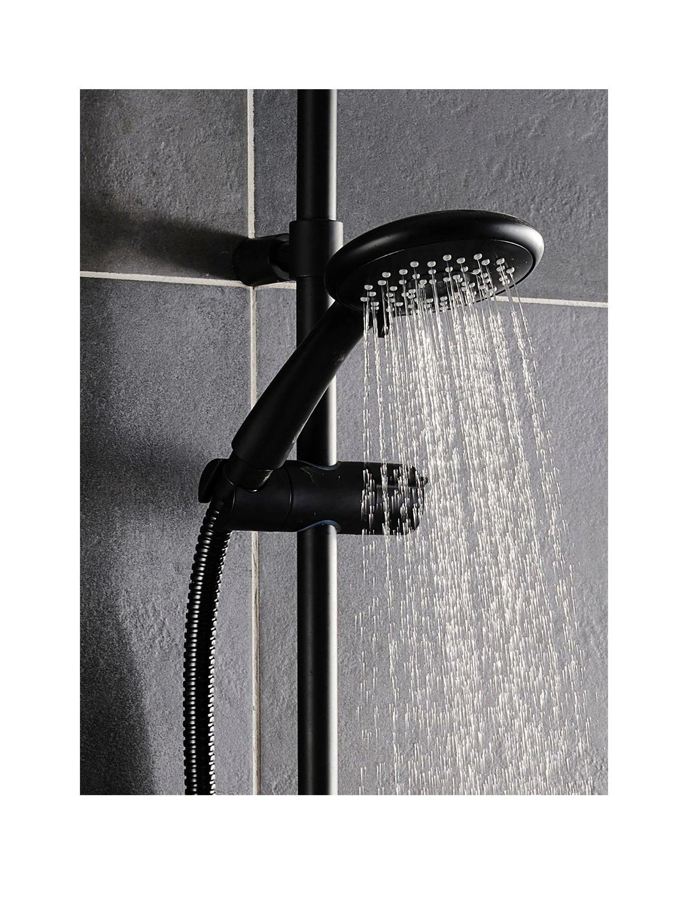 The 8000 Series universal matte black shower head offers fantastic showering versatility with a choice of five unique spray patterns and the ability to fit this shower head for use on your electric, mixer and power shower. It’s sleek, easy to clean design will make a stylish addition to your bathroom.
