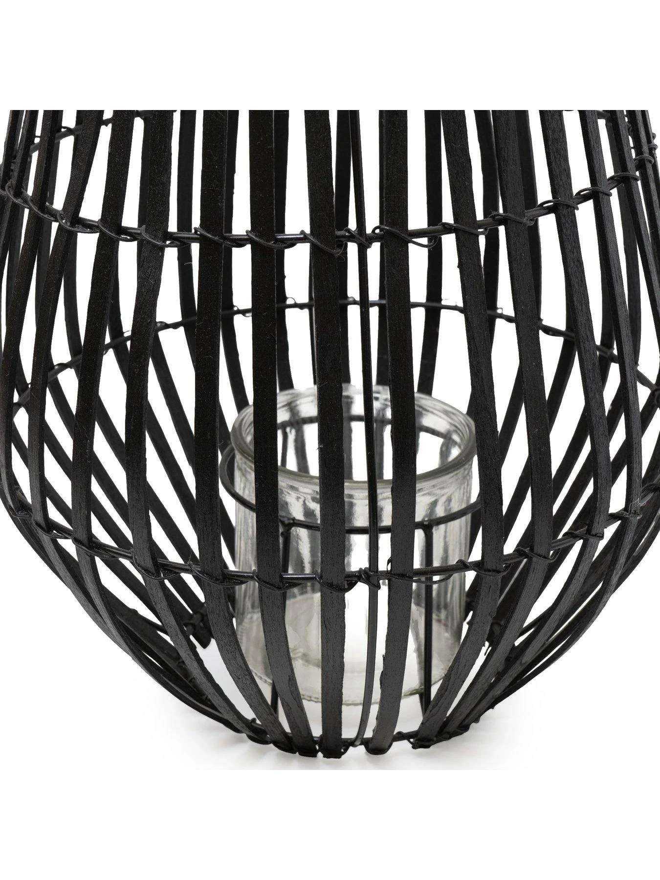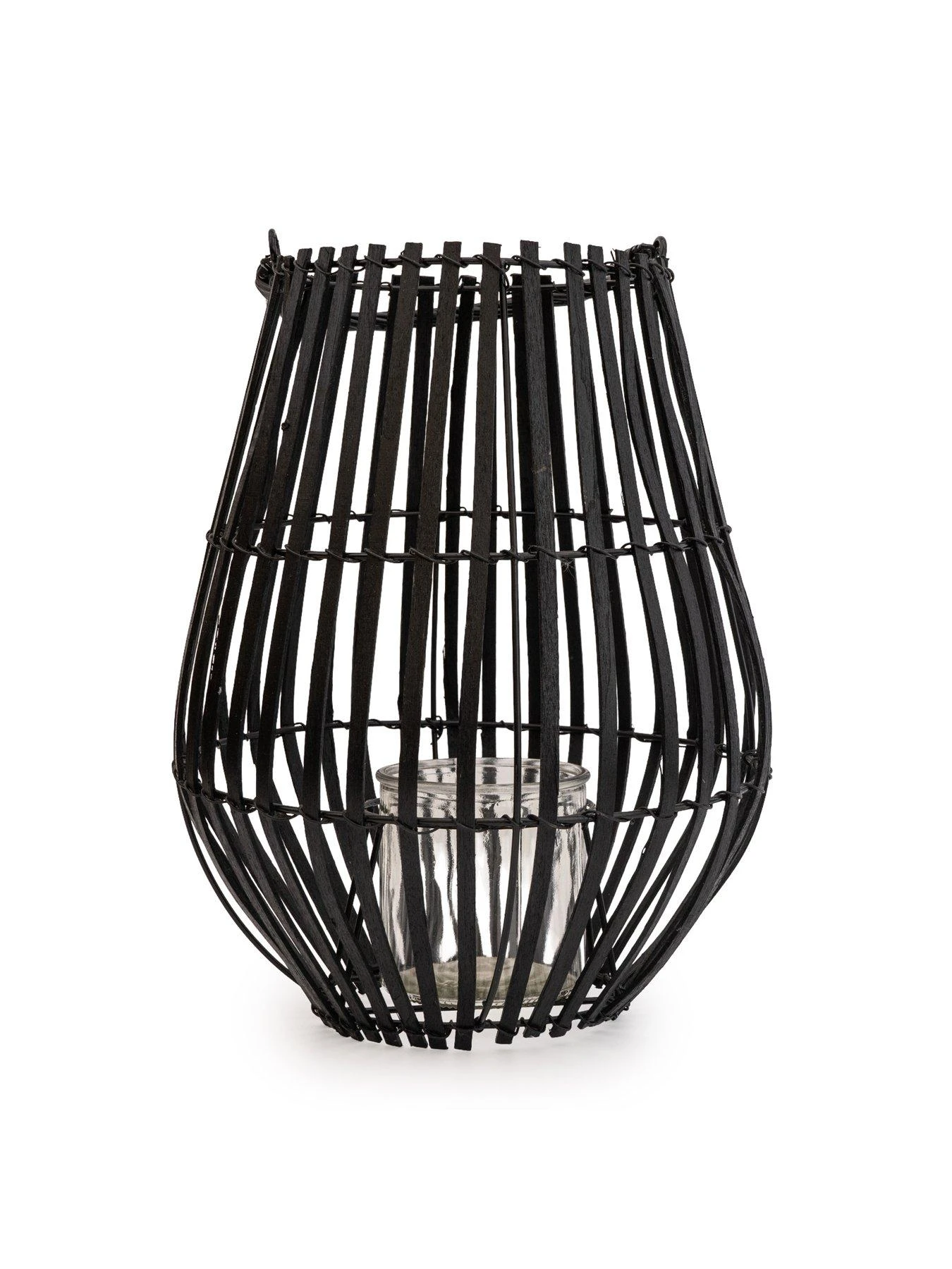Extra Large Matt Black Slatted Lantern with handle and glass candle insert. Perfect for the summer months, can be used both inside and out. Has a matching range