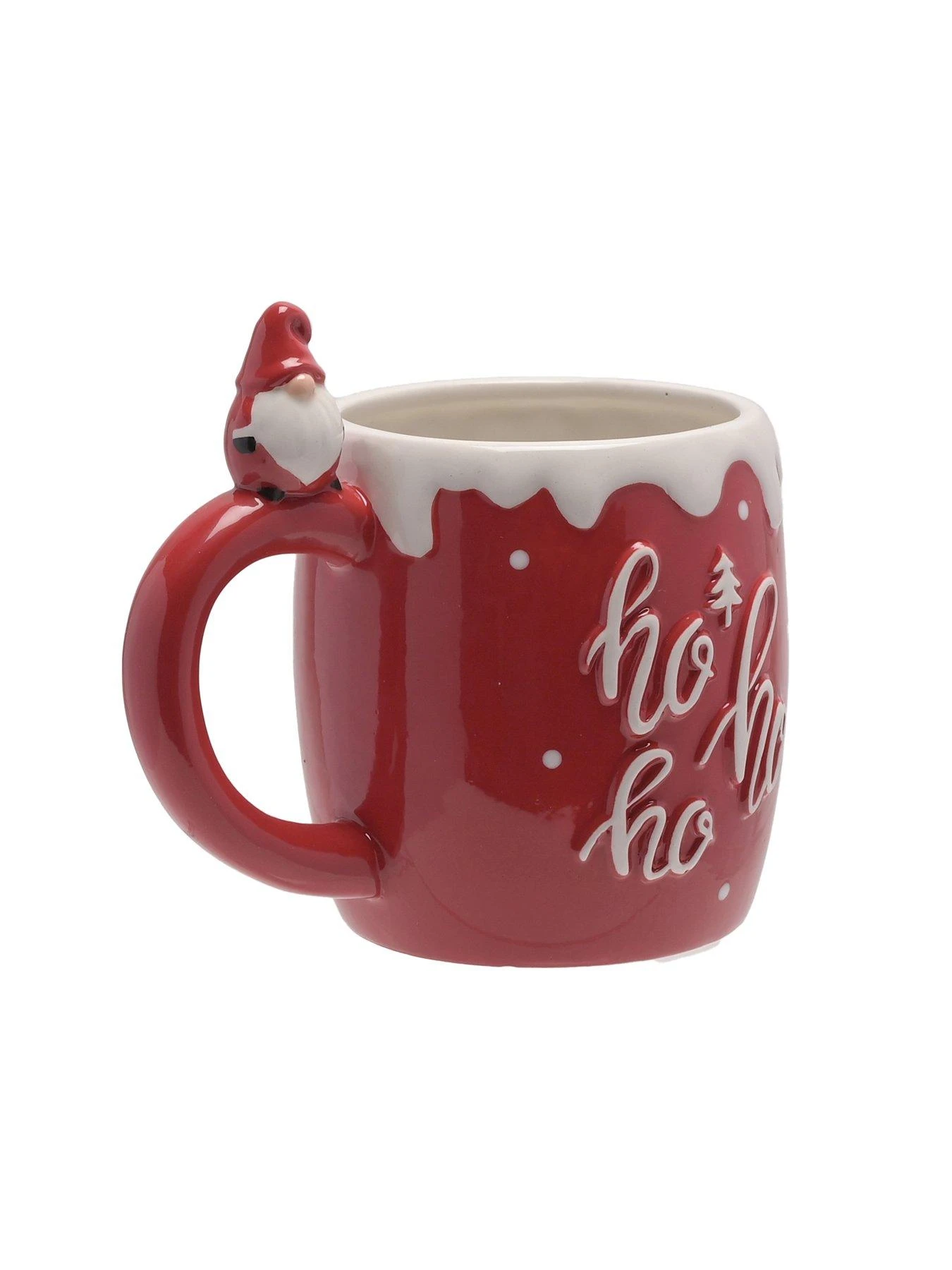 The ceramic mug showcases a distinctive festive design, bold colouring, gloss finish and white ??????Ho Ho Ho’ title. It is finished by a small gonk dressed as Santa Claus sitting upon the handle.