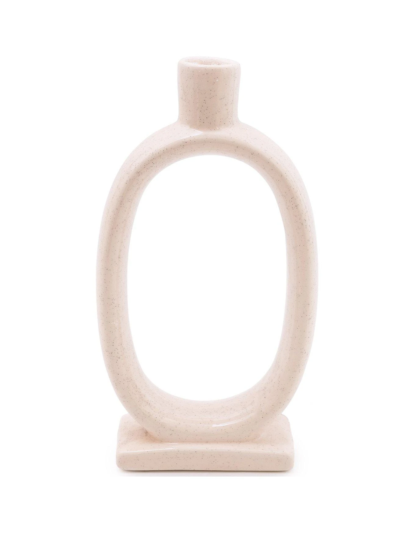 On trend large round donut circular shaped cream candle holder with a speckled tactile finish. A perfect way to add texture and height to your interior.