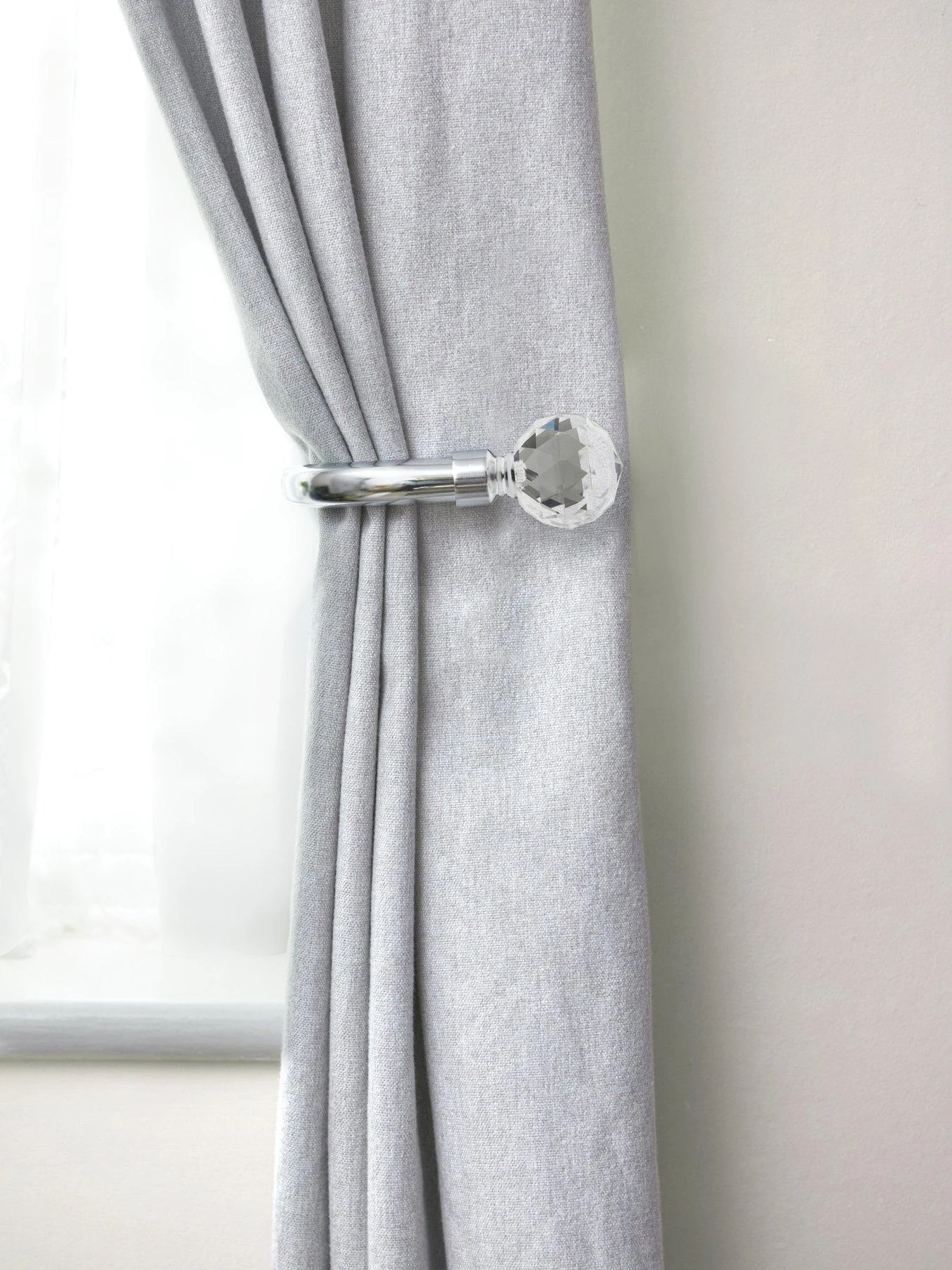 Keep your curtains neat and tidy when open with this pair of crystal finial holdbacks.