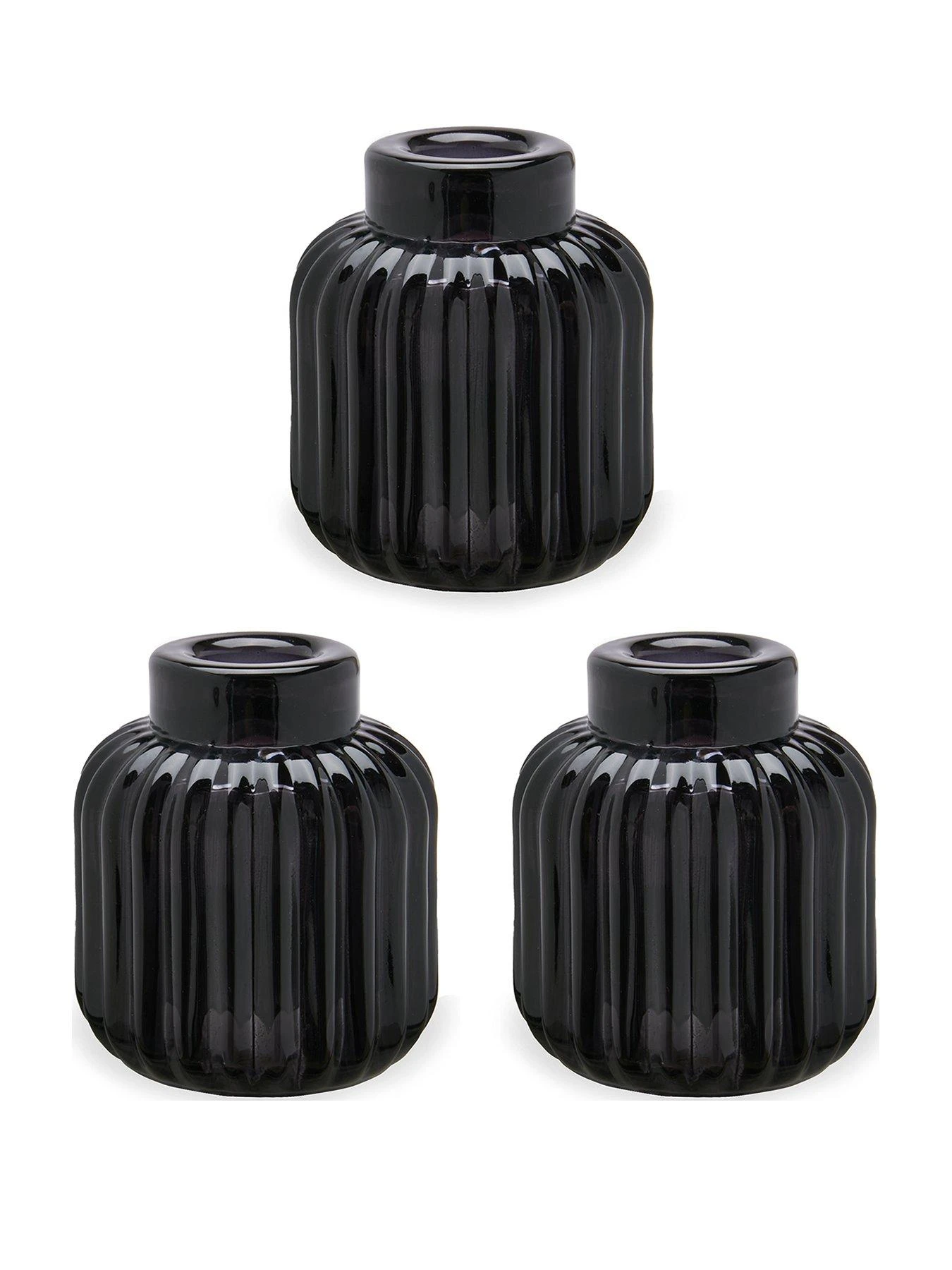 Very Home Set Of 3 Ribbed Candle Holders