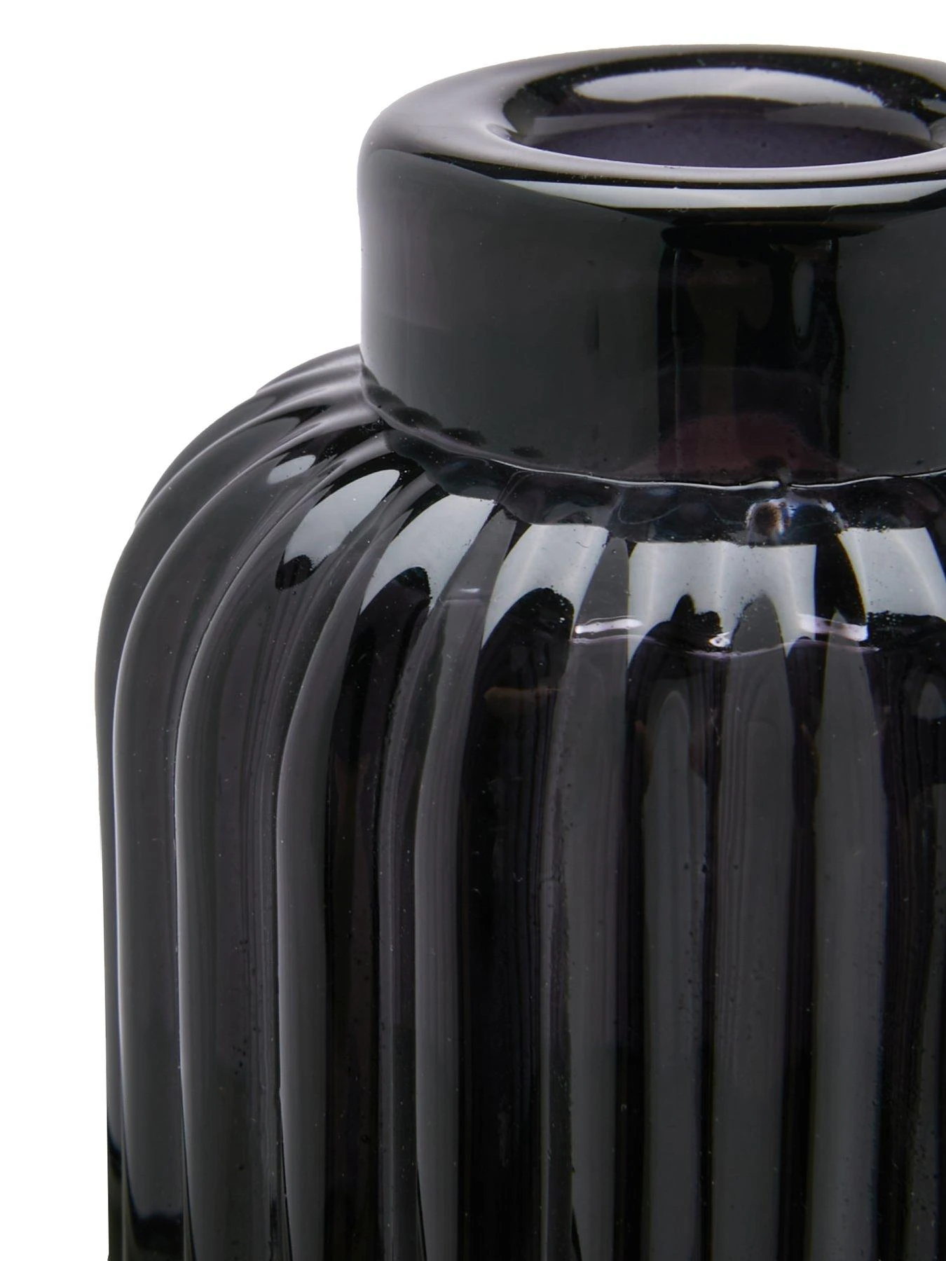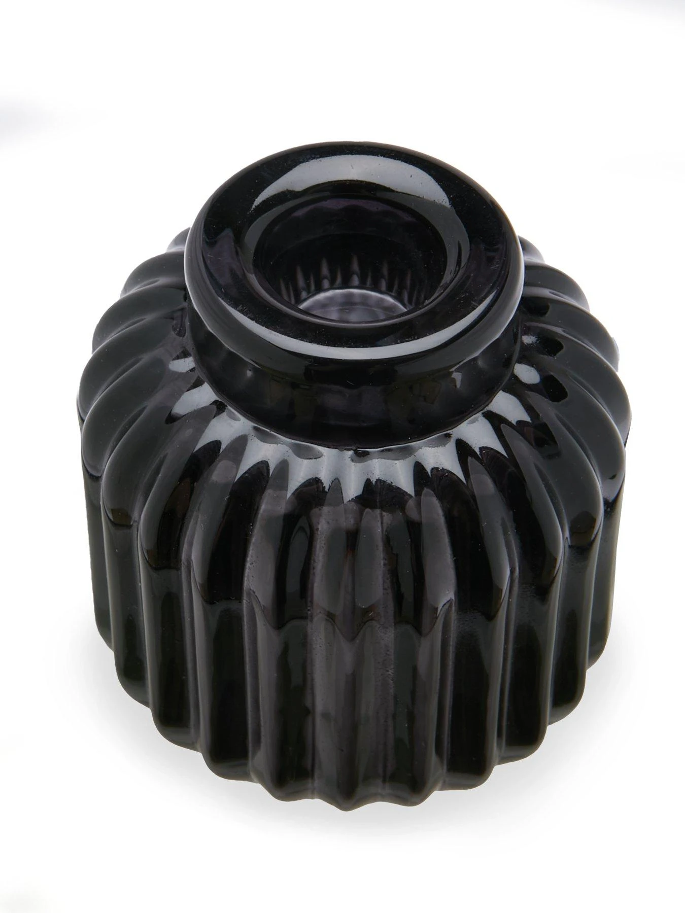 set of 3 glass ribbed candle holders with black smoke color