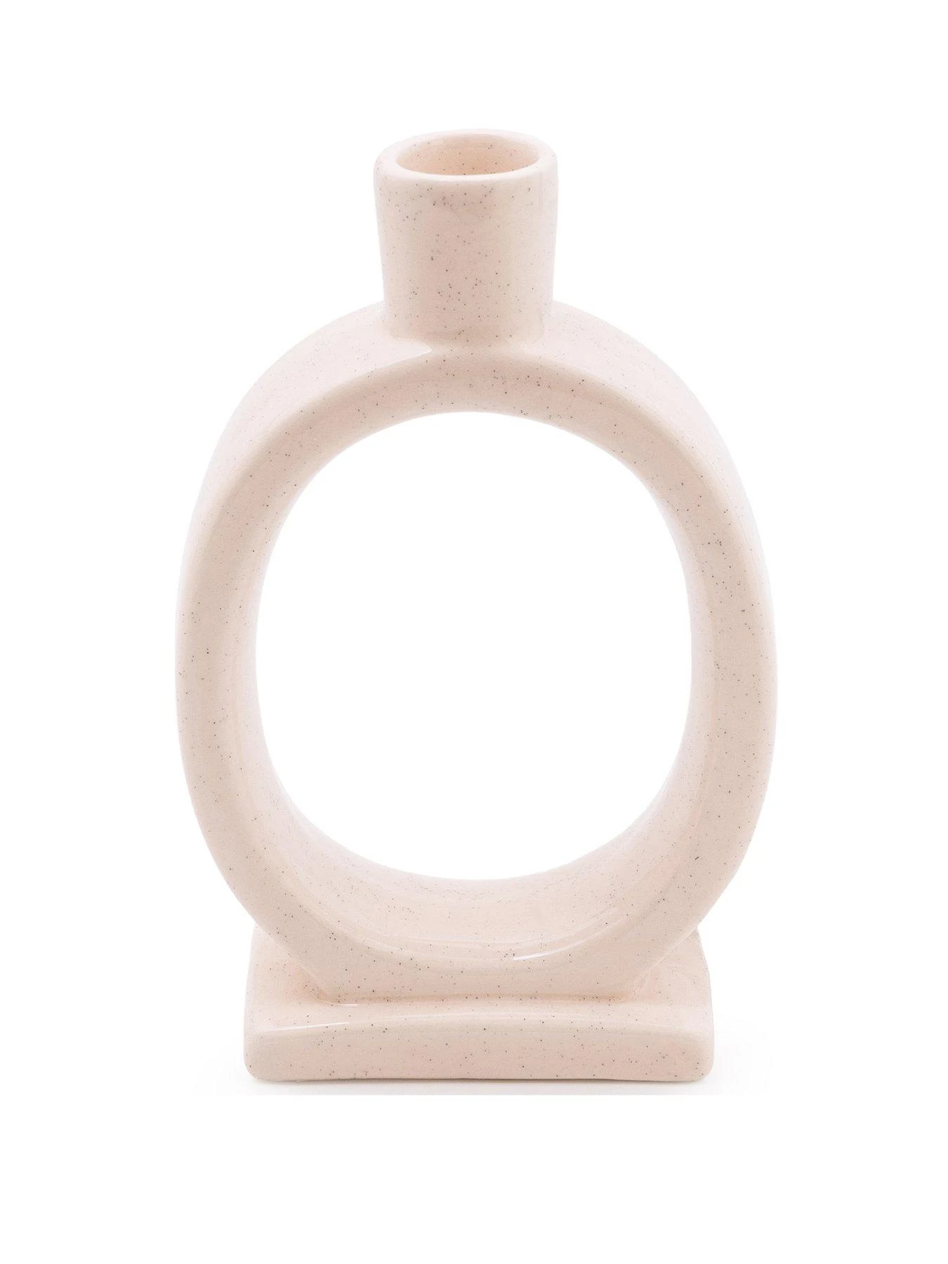On trend medium ound donut circular shaped cream candle holder with a speckled tactile finish. A perfect way to add texture and height to your interior.