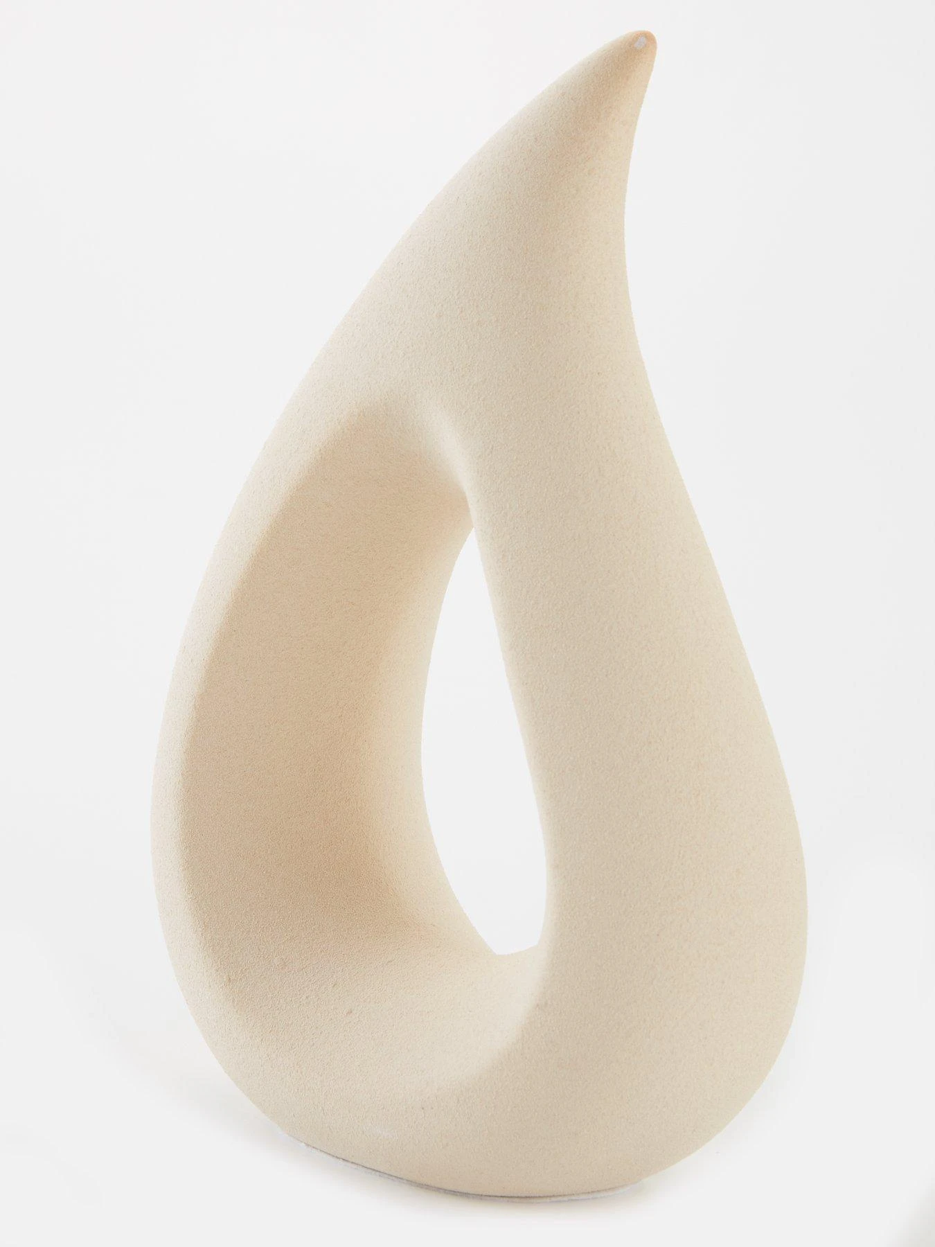 Shaped to look like a teardrop and standing 30 cm tall, a cut-out section in the centre creates a subtle sense of depth, while the textured, semi-rough finish helps to create a unique expression. Place on a sideboard, a shelf or as a dining table centrepiece to really catch the attention.